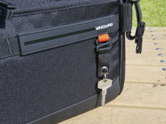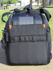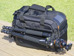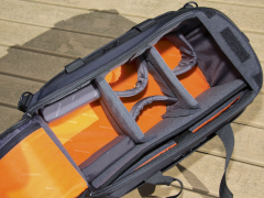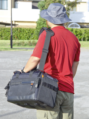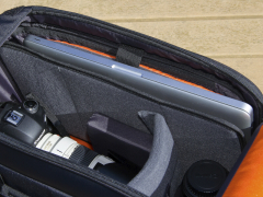 ご覧のようにQuovio 41のレイアウトはシンプルであるだけに自由度が高い。特にバッテリーグリップを装着したカメラに望遠ズームレンズを装着したままで収納できるバッグは多くなく、時間に追われるような忙しい撮影で“撮ってそのまま移動!”というようなシーンではとても便利かつ安全に機材を持ち運ぶことができる。