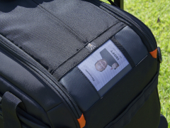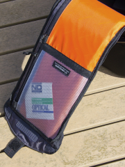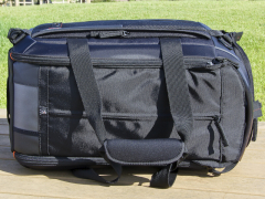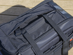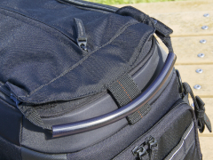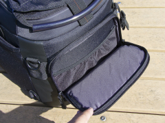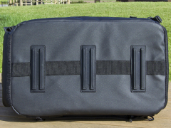 | 背面のポケットは底のジッパーを開くことで、トロリーキャリアに取り付ける為のスリーブとなる。 |
