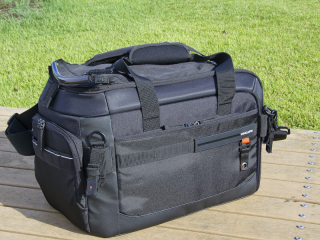 Quovio 41は、業務用ビデオカメラの持ち運びも考慮してレイアウトされたバッグとのことだ。ビデオジャーナリストなどが使用するビデオカメラは一般的な家庭用ビデオカメラよりも大型となることからも、このような横長のバッグレイアウトになったものと思われる。