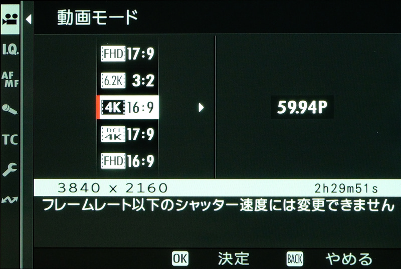 もちろん、良く使われるところの4K 60PやFHD 60Pといったフォーマットもカバーしており、一般的な撮影ニーズには十分対応できる仕様となっている。