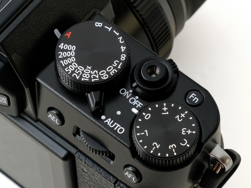 操作性に関しては、まずシャッター速度ダイヤルと露出補正ダイヤルを備えている点が特徴のひとつ。頻繁に使うかどうかは人それぞれだが、X-Tシリーズらしい操作系なのは確かだ。
