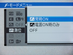 | GPS機能の設定は、F-モードメニューとセットアップの両方から行なえる | |