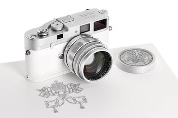 | RICOH PX(ライムグリーン)。別売のプロテクションジャケット(ホワイト)とネックストラップ(ブラウン)を装着 |
