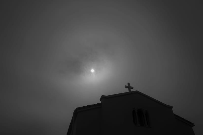 教会を見上げると、薄雲がかかった太陽が目に入りました。高コントラストの画面構成で、空が白く飛んだり、建物が黒くつぶれたりしやすい状況です。そこでイメージコントロールは[ソフト]を選択。ふわっと柔らかく滑らかな調子になりました。バライタ系のファインアート紙でプリントしたくなる仕上がりです。SNSなどインターネットで公開し、液晶画面で見てもらうのも良いのですが、RICOH GR IV Monochromeの高画質はプリントで本領を発揮するように思います。