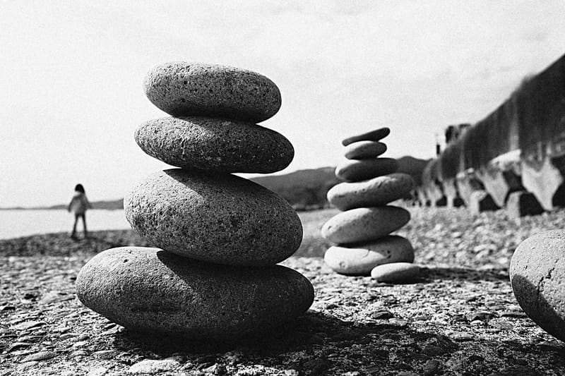 山頂でもないのに積み石がありました。イメージコントロールは[グレイニー]を選んでみました。[ハイコントラスト]とは違った印象で、飛ばさずつぶさず、硬調でとてもシャープです。粒状感もあって銀塩プリントのような仕上がりです。[ハイコントラスト]は低コントラストのシーンで使いたくなりますが、[グレイニー]は反対に高コントラストのシーンが面白いように感じました。
