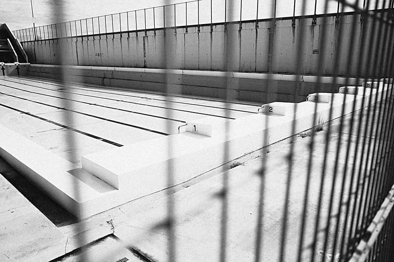御幸の浜の近くにプールがありました。オフシーズンなので水は張られていませんが、日差しがあるので夏っぽい雰囲気です。RICOH GR IVでカラーだとそうじゃない季節感が出てしまったかもしれませんが、[グレイニー]を選んだらちょうど良い感じの調子になりました。ハイライトに乗った粒状感がフィルムライクで好印象です。その粒状感は柵の前ボケにも絶妙に効いています。
