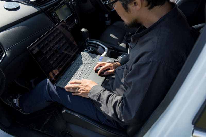 朝の撮影を終えてクルマに戻るとすぐにLG gram Pro 2in1 16を取り出し、撮ったばかりのデータを確認する。