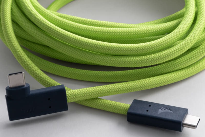 4.5mという長さだけでなく、特徴的なライム色の配色は床に這わせたときに目立つため、テザーケーブルとして安全で扱いやすいだろう。