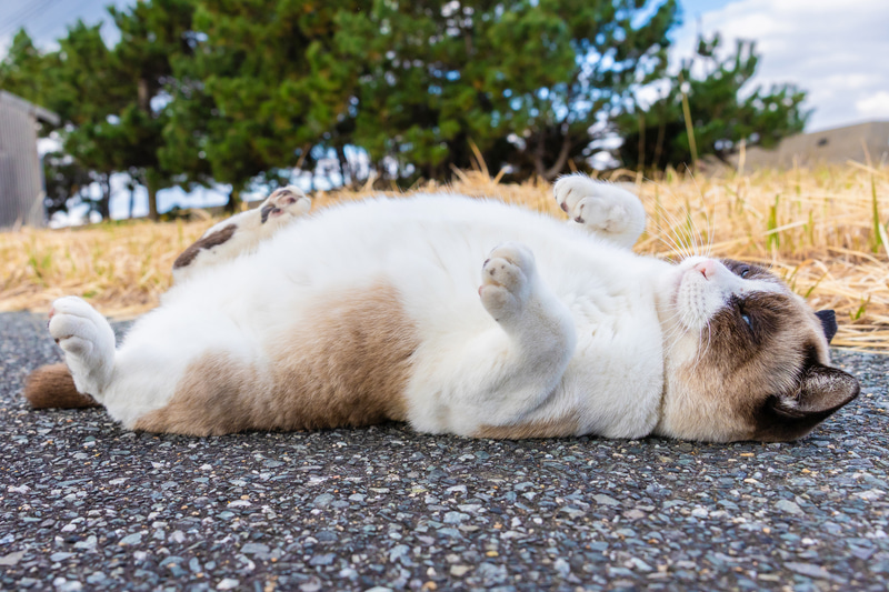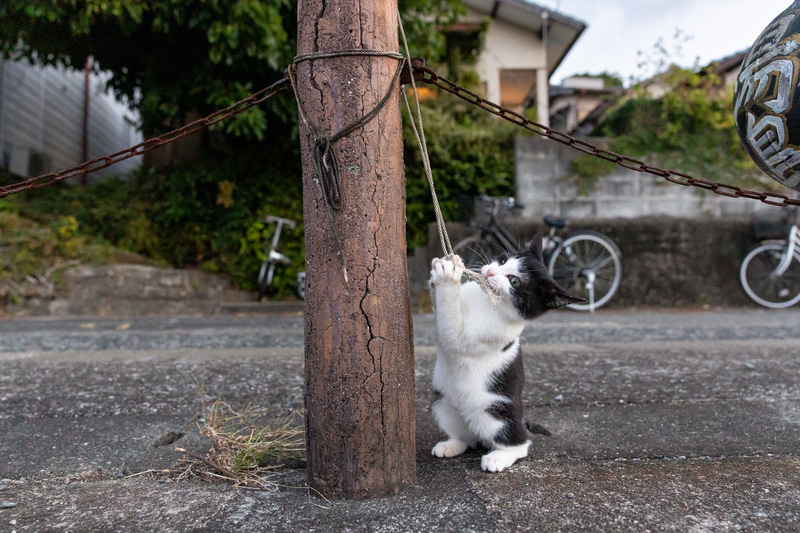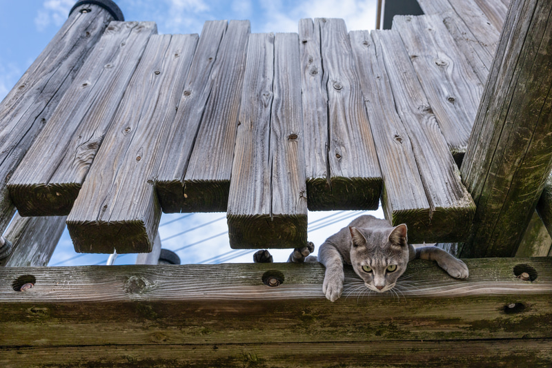 猫の挙動は予測不可能な部分が多く、撮影後にトリミングして画角を整えることは日常的だ。特にローポジションからのノーファインダー撮影では水平の傾きが生じやすく、後処理で修正が必要となる場面も多い。その場の状況を入れて撮影したが、撮影後に猫だけを切り取りたいと思っても、画素数が少ないときは諦めることもあった。