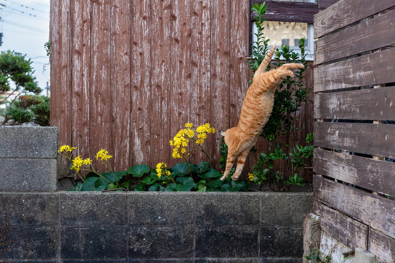 EOS R6 Mark IIIではバッファメモリーが増強されてRAWで連続約150枚、約4秒間、途切れずに連写ができる。猫の一連の動作を写すには十分な時間だ。常に約40コマ/秒が使えて、まったくストレスなく撮影できる。