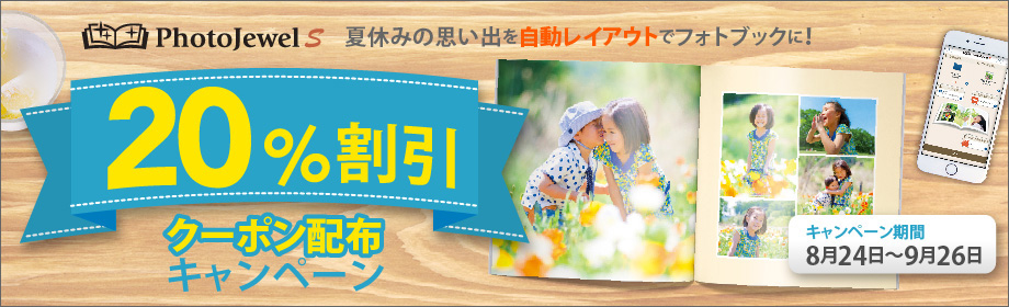 "PhotoJewel S"夏の思い出、 たっぷり残そう!第一弾 30/40ページ全商品20%OFFキャンペーン