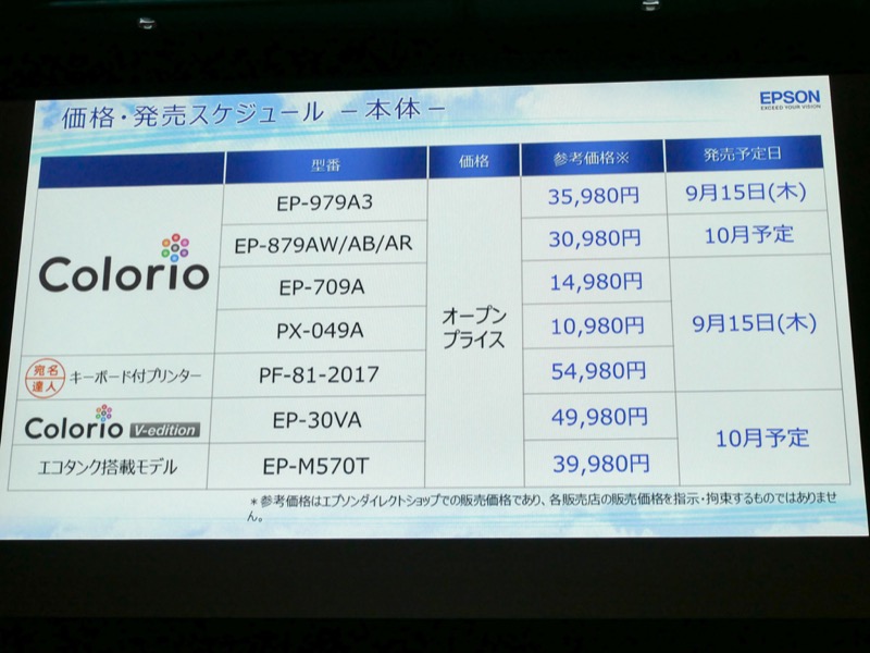 エプソン、省スペースA4モデルなど2016年秋冬Colorio