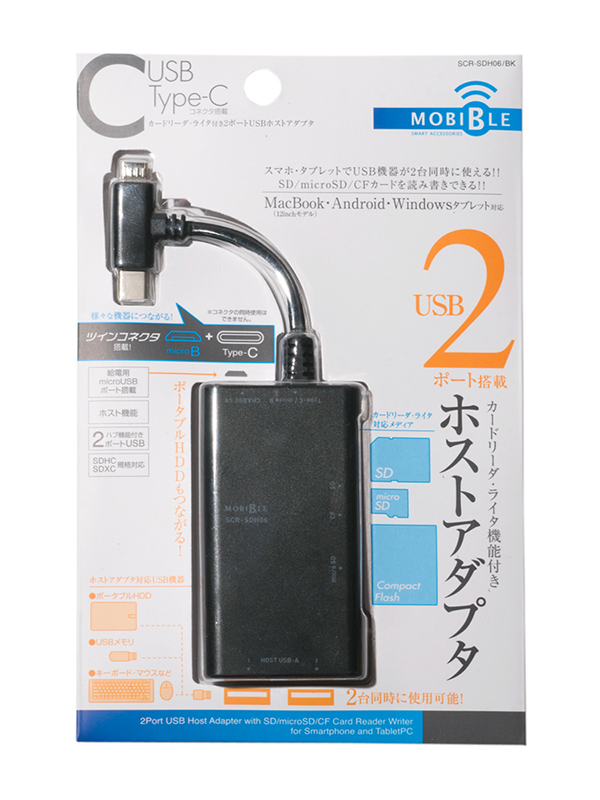 3タイプのUSBコネクタに対応したSDカードリーダー