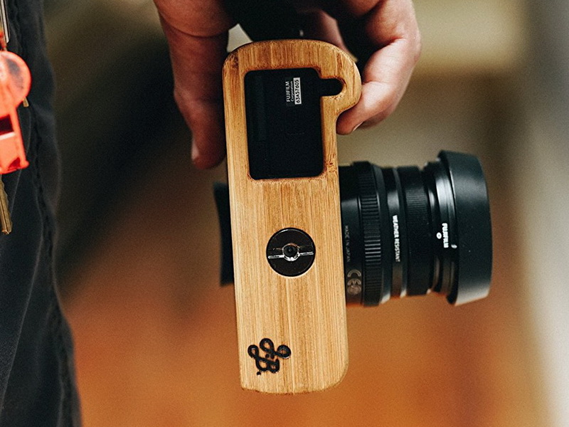 竹やウォルナットを組み合わせた、カメラ用アルミグリップ