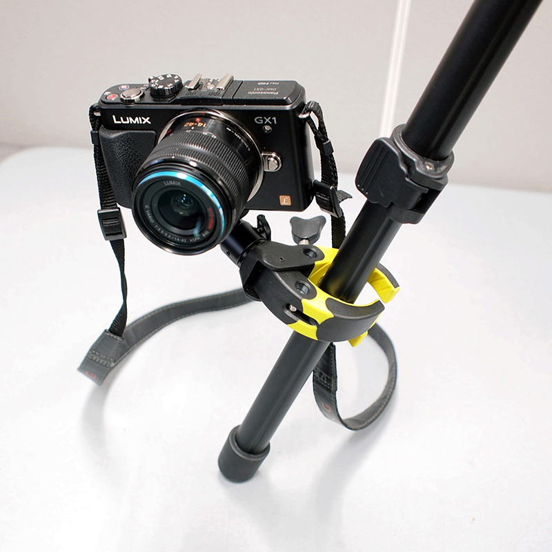 カメラを固定できる自由雲台付きのクランプヘッド