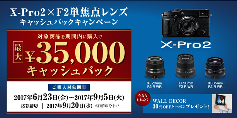 X-Pro2×F2単焦点レンズキャッシュバックキャンペーン