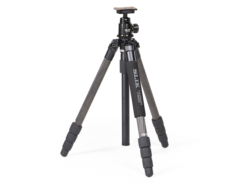 スリック、自由雲台をセットした「ライトカーボンE FA」三脚
