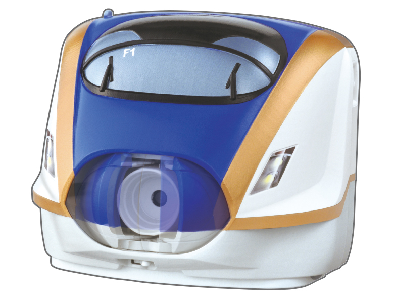 新幹線の形をしたキッズカメラ「ぼくのプラレールカメラ E7系新幹線かがやき」