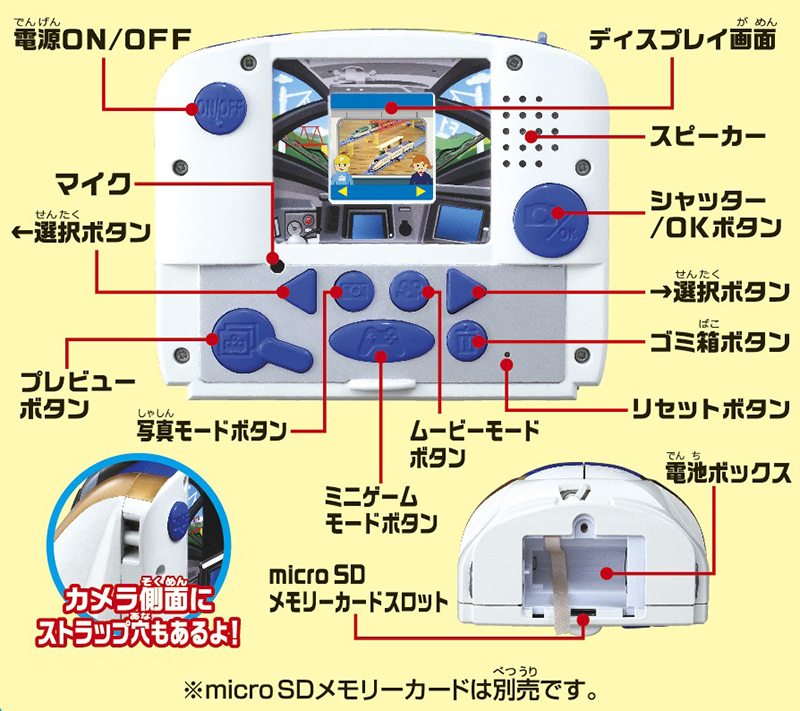 新幹線の形をしたキッズカメラ「ぼくのプラレールカメラ E7系新幹線かがやき」