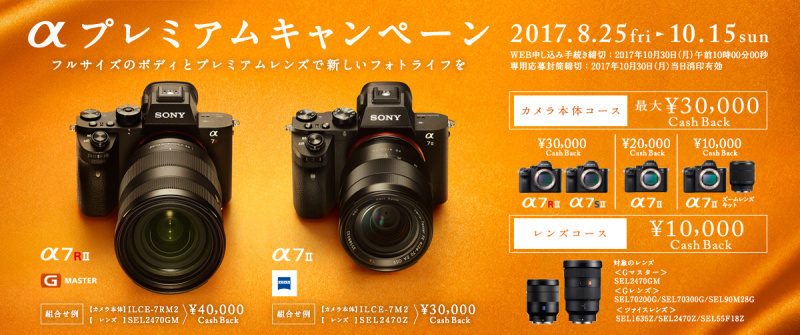 ソニー、α7 IIシリーズとレンズのキャッシュバックキャンペーン