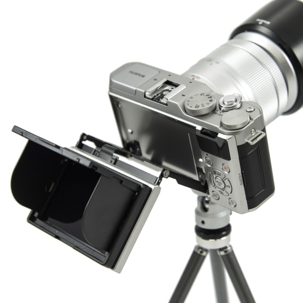 カメラの背面モニターを見やすく 革調素材の液晶フード