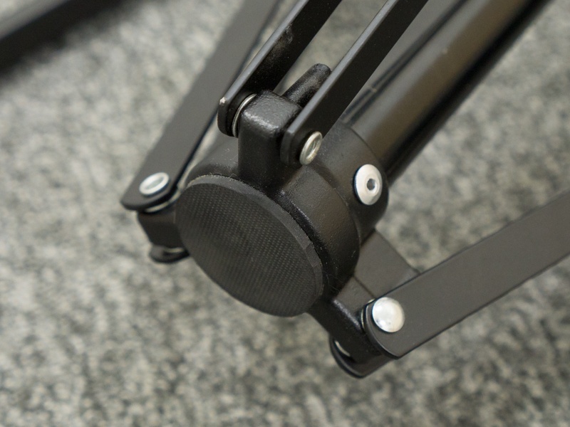 「下ろすと開く」「上げると閉じる」…脚が自動で開閉するライトスタンド