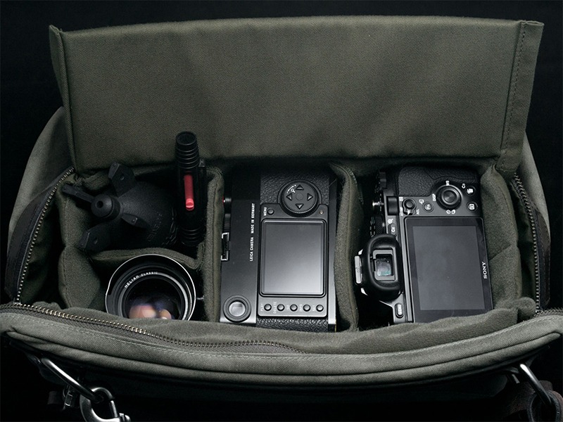 アッシュグリーンのショルダーカメラバッグ「トゥルーパー」