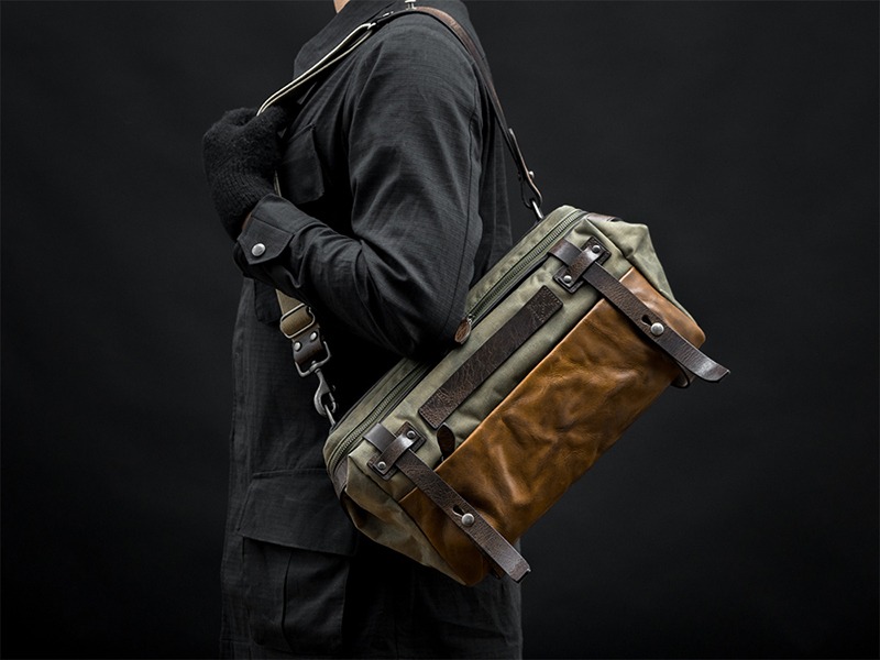 アッシュグリーンのショルダーカメラバッグ「トゥルーパー」