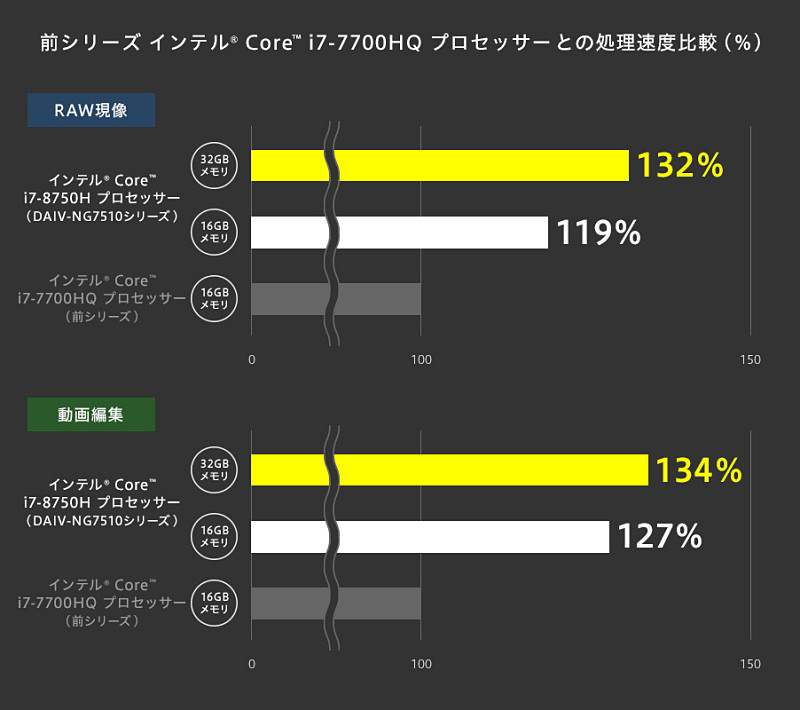 マウスコンピューター、6コア12スレッドCore i7-8750H採用ノートPC
