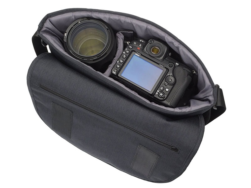 上と下、2つの開口部を持つ大型カメラバッグ