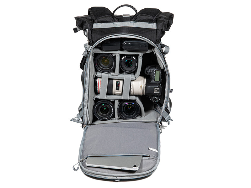 f.64、フレキシブルに収納量を変えられる上下2気室のカメラバッグ