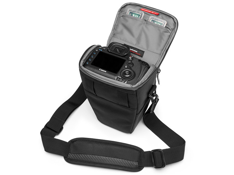 マンフロット、カメラストラップを一体化したバッグ