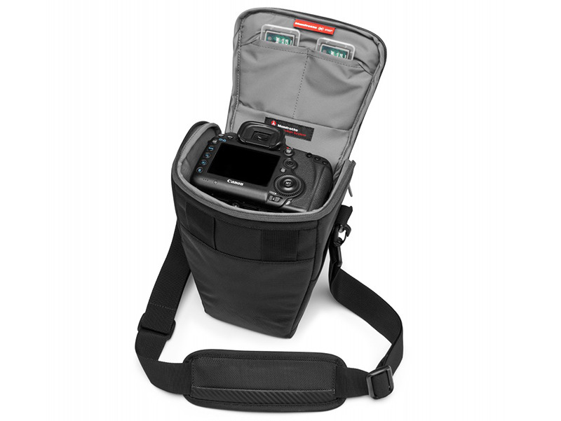 マンフロット、カメラストラップを一体化したバッグ