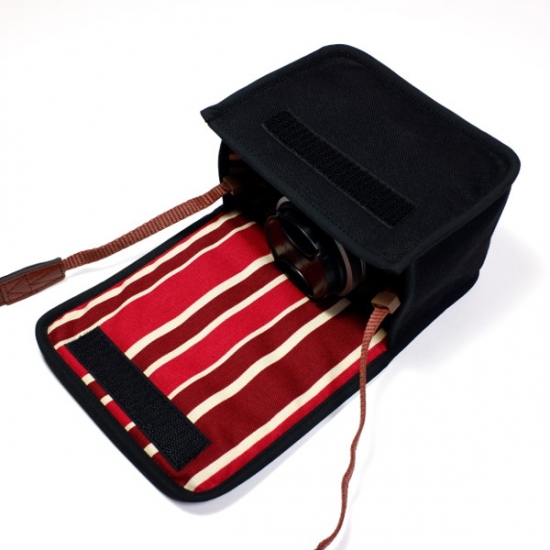 キットレンズを付けた富士フイルムX-A7を収納できる布ケース(3/6)