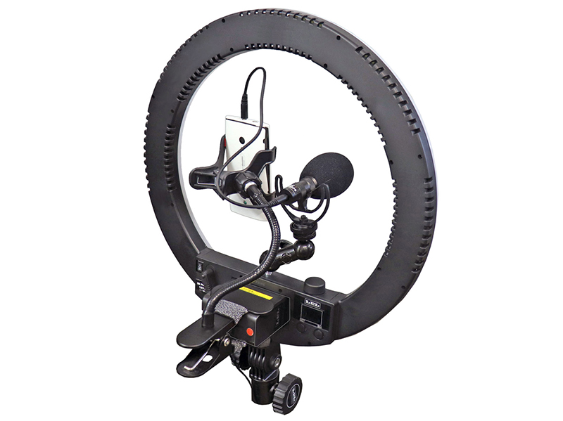 スプリング式アーム+フレキシブルアームで設置自由度を高めたスマホ用LEDリングライト