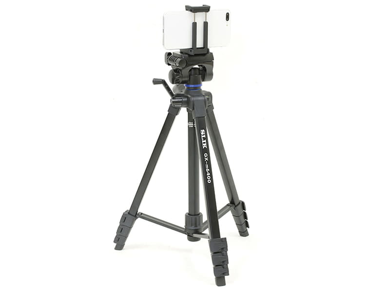 スリック、スマホホルダーとBluetoothリモコンが付属するテーブル三脚