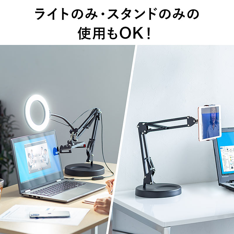 スプリング式アーム+フレキシブルアームで設置自由度を高めたスマホ用LEDリングライト
