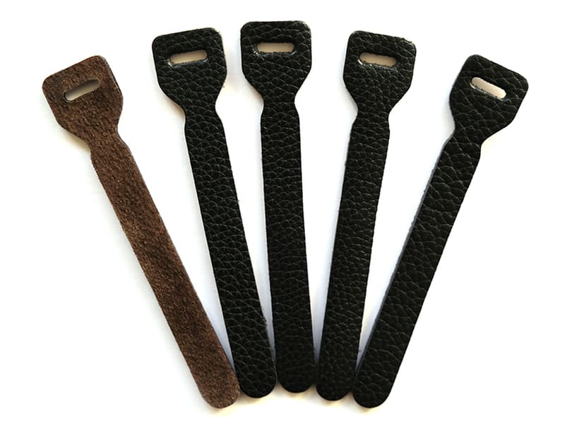 カメラマン萩庭桂太氏発案のレザー製ハンドストラップ「HAGINIWA-1」。2つの穴で巻き付け方を調整