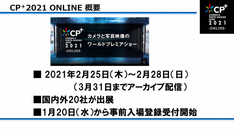 CP+2021 ONLINEの入場事前登録がスタート