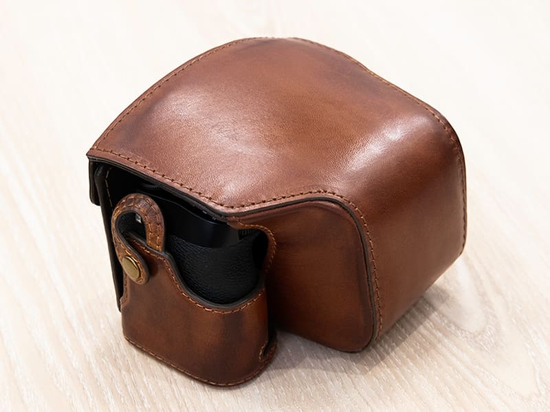 ビンテージ加工を施した、FUJIFILM X100V専用のレザー速写ケース