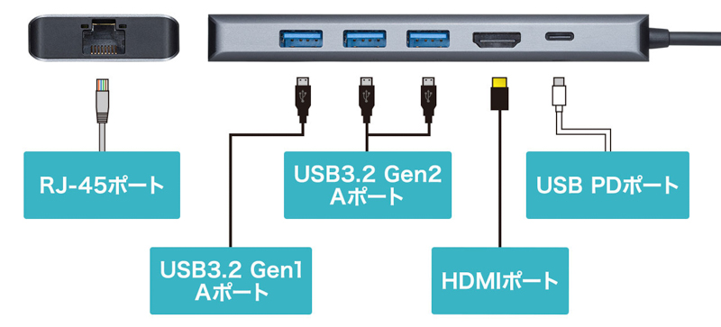 サンワサプライ、USB Type-C機器用のマルチポートアダプター