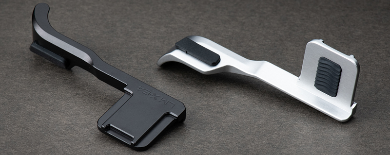 指掛かりが広めのFUJIFILM X-E4専用サムレスト。レンズメイト社製・2色展開。税込9,350円(4/6)