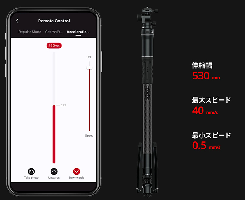 幅26.4cm。軽量コンパクトデザインながら水平15kgの機材重量を動かせる電動スライダー。約4.5万円
