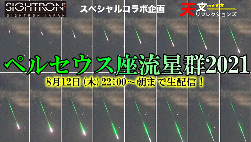 12日21時から、全国各地の映像を配信する「ペルセウス座流星群2021ライブ中継」。火球のスローリプレイも