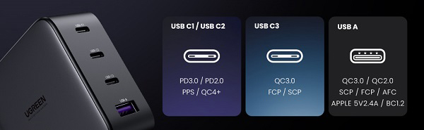 UGREEN、最大100W出力のGaN急速充電器。Type-C×3、Type-A×1。クーポン適用で6,999円→4,899円(2/4)
