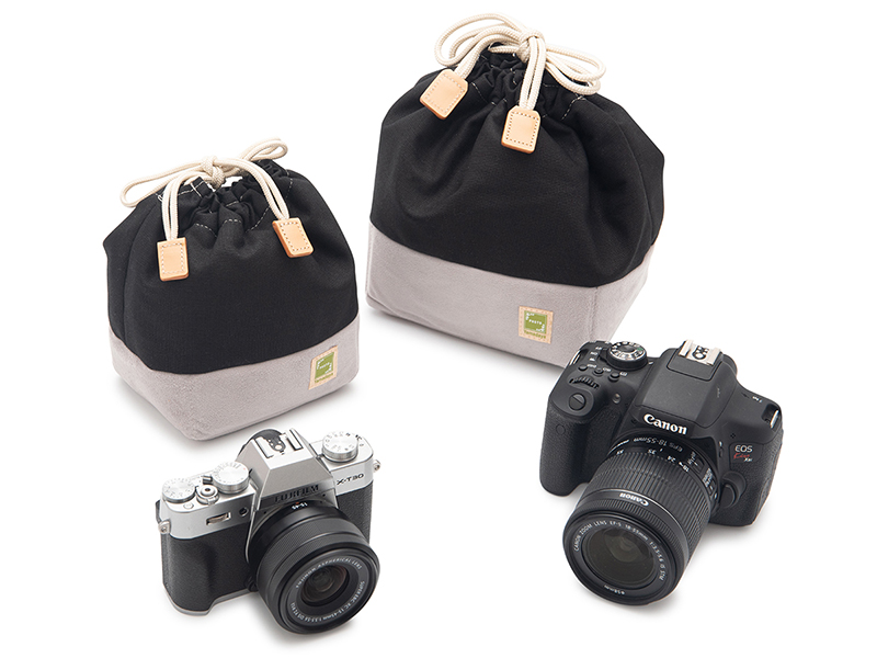 ミラーレスカメラがすっぽり入る「カメラきんちゃく袋 II」