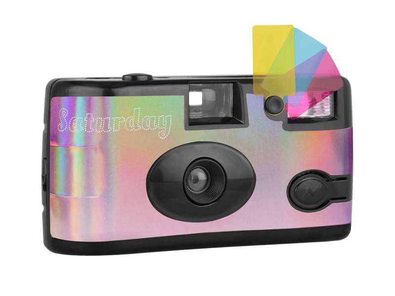 ロモグラフィー、「LomoChrome Purple」を装填したレンズ付きフィルム。ホログラムデザインの“Saturday Edition”(2/7)
