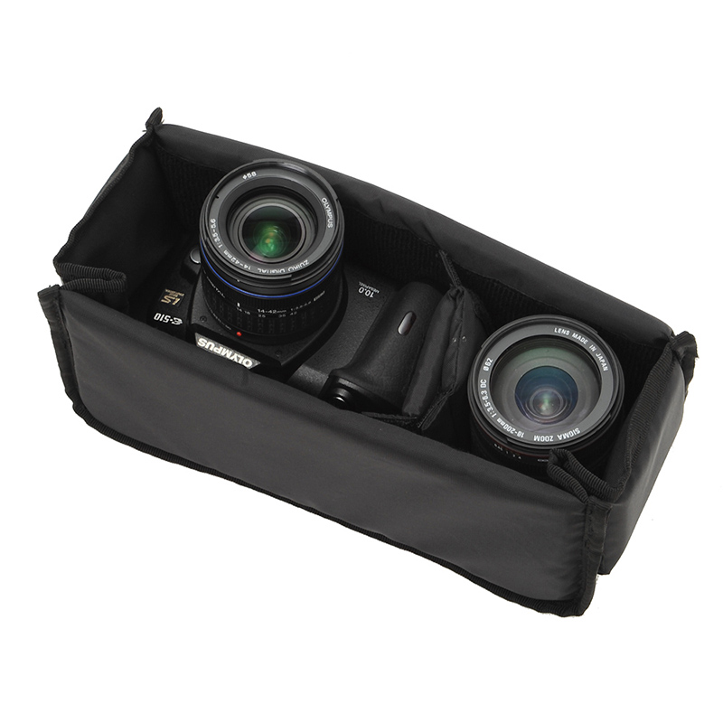 使わない時に折りたためるインナーボックス。小型一眼レフやミラーレス機+レンズの収納に