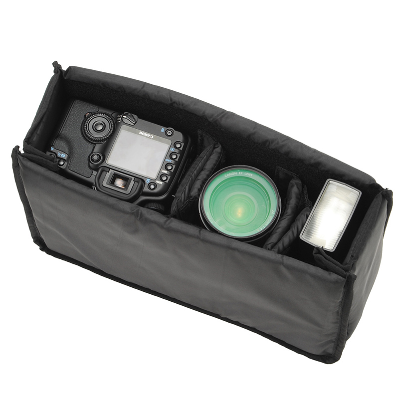 使わない時に折りたためるインナーボックス。小型一眼レフやミラーレス機+レンズの収納に