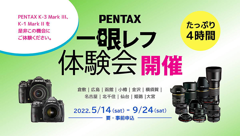 「PENTAX体験会スペシャルin大阪」の事前申込が開始。8月27日・28日開催